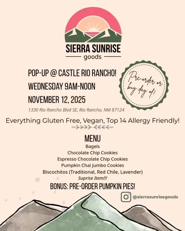 Sierra Sunrise Goods is a locally owned and operated bakery and catering service specializing in gluten free, vegan, and top 14 allergy friendly baked goodsβPrioritizing taste and quality for everyone