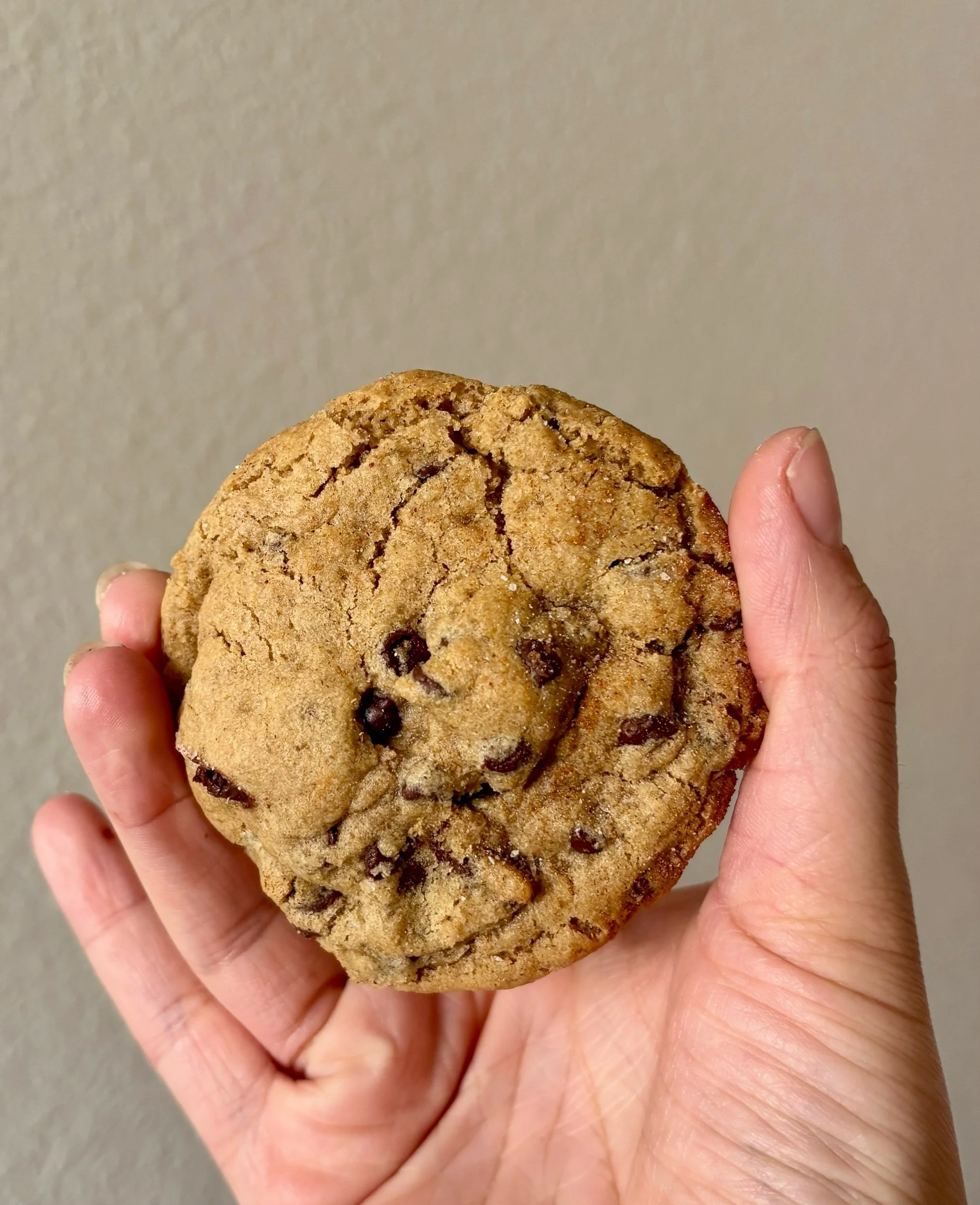 A classic goodie that we all know and love—but make it gluten free, plant based, and made without the top 14 allergens. This soft, chewy chocolate chip cookie is dusted with cinnamon and salted with coarse Himalayan pink salt. Warm this cookie up for melty chocolatey goodness!